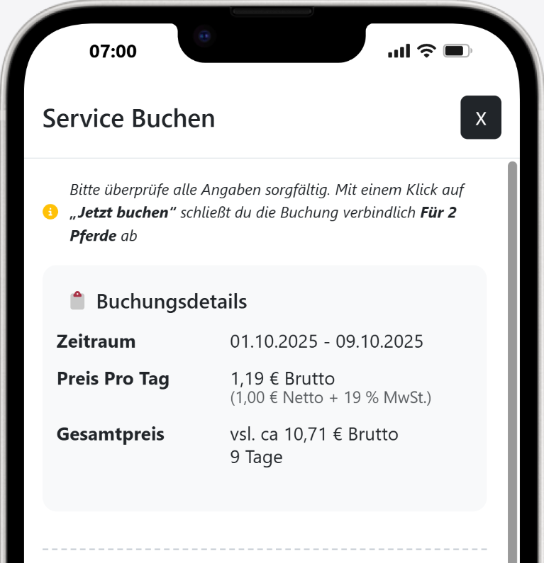 Transparente Kommunikation von Preisen und gebuchten Services schaffen Vertrauen – deine Kunden fühlen sich bestens betreut.